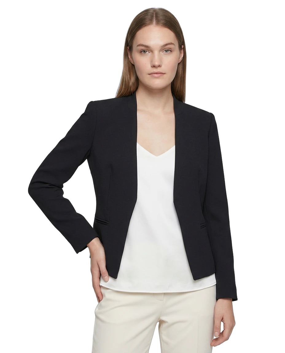 Opt for the most minimalist jacket yet with Calvin Klein's streamlined style, sans collar and closures for a sleek effect.