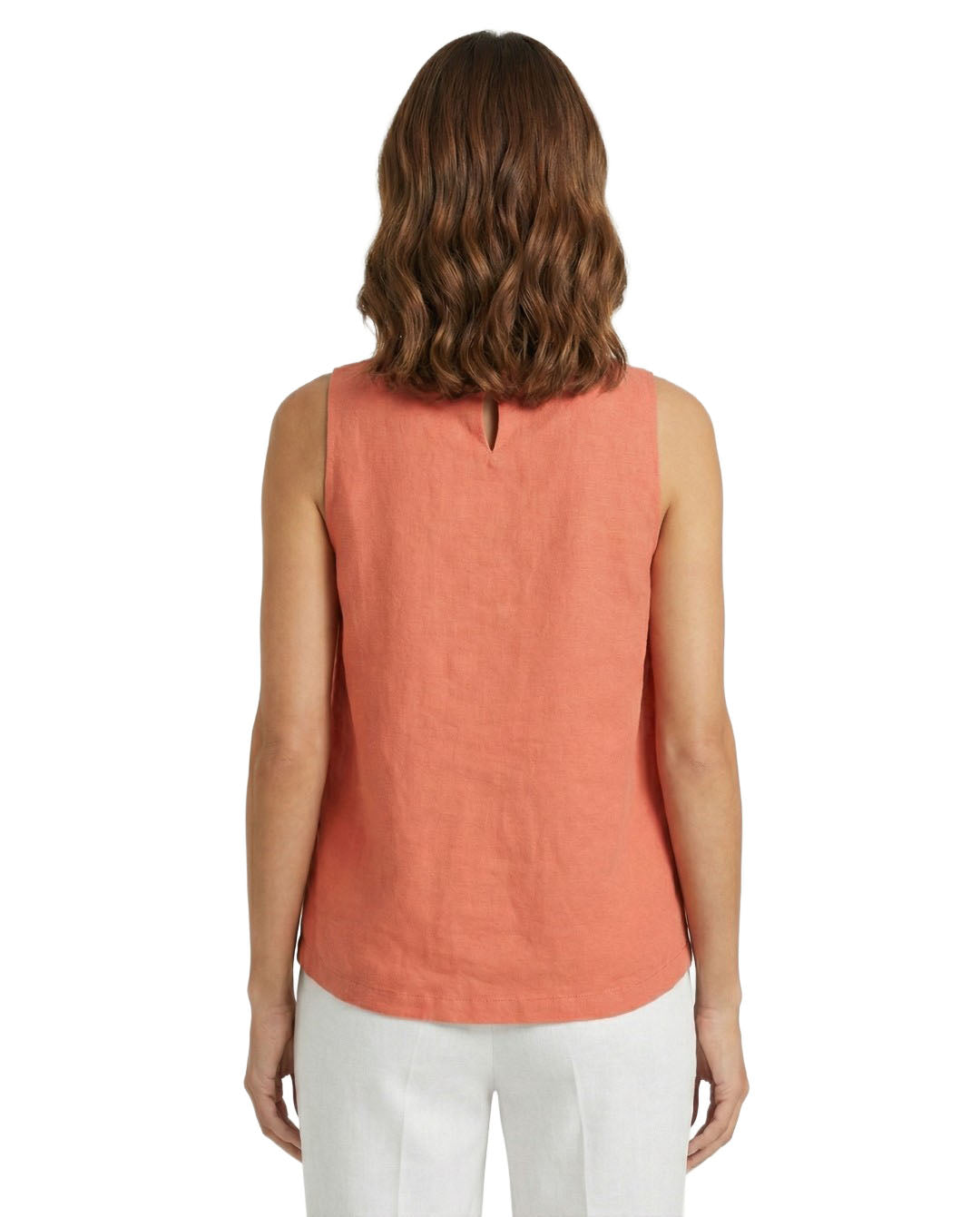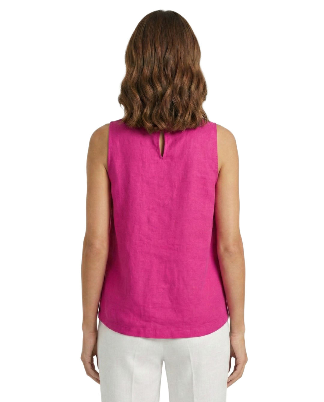 • Crewneck; keyhole and button closure at back