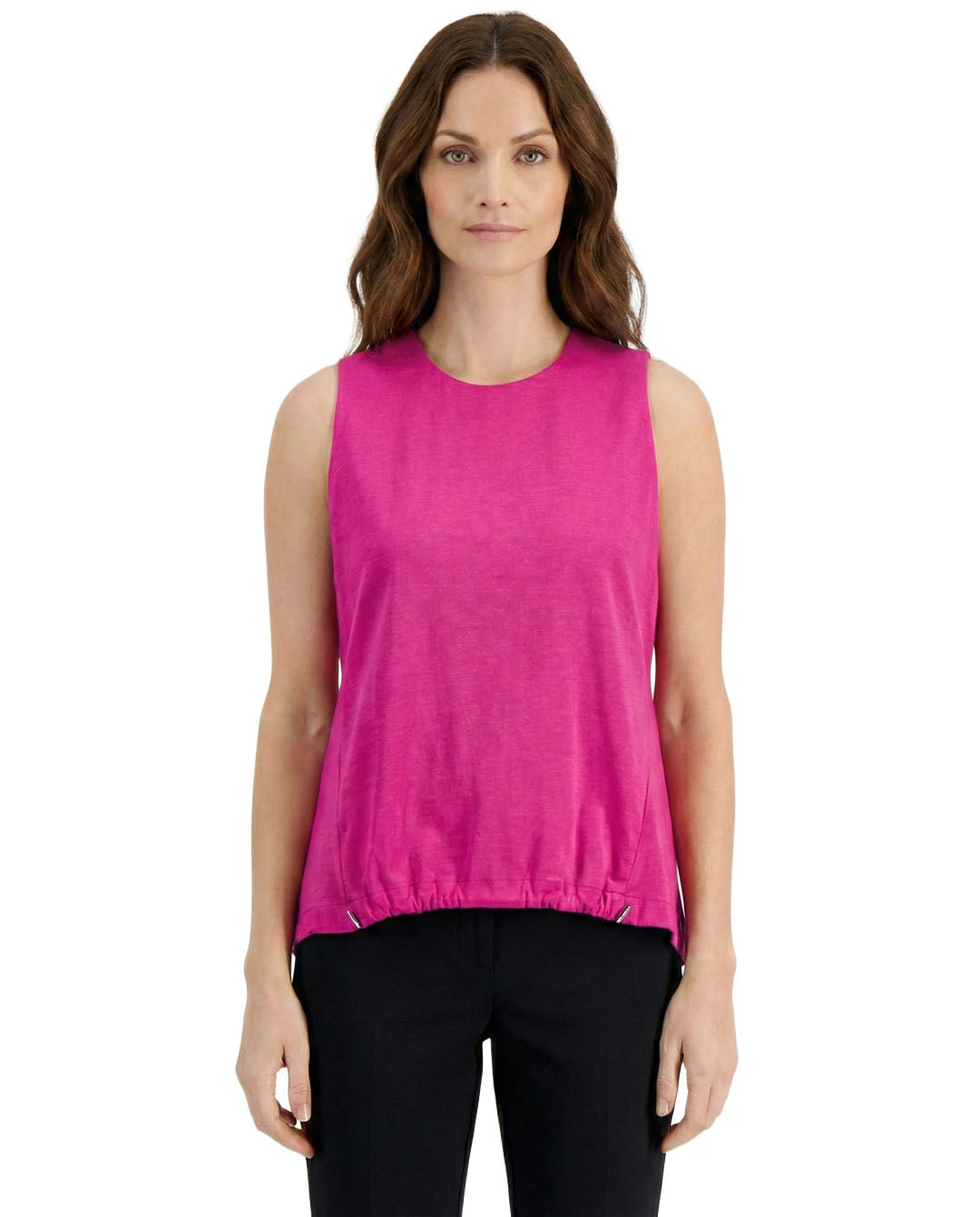 Alfani Transforms The Timeless Sleeveless Top With This Modern Design, A Chic Crewneck Style In A Classic Solid Shade And Finished With An Adjustable Bungee Hem For Added Shape.